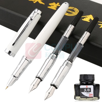 永生 永生 9106逸彩-3铱金钢笔三件套组合套装墨水笔暗尖明尖美工弯尖 优美白色 三件套组合-白色 (单位:个)