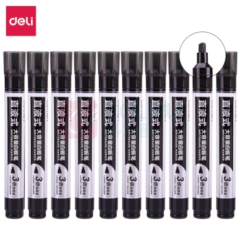 得力 deli 得力(deli)10支直液式大容量储墨白板笔 可擦易擦黑色 直液式黑色10支 (单位:个)