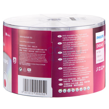 飞利浦 PHILIPS 光盘 DVD+R手拎乖乖桶 50片/筒 空白光盘 刻录光盘 光碟16速4.7G (单位:筒)