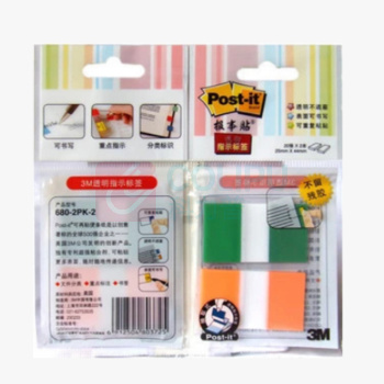 3M 透明塑料 指示标签 680-2PK-2 25*44mm*2 (绿色、橙色) 20页/条 2条/包 (单位:包)