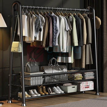虎刻 衣服架挂衣架多功能简易衣帽架 28管双层-无轮 加粗 150*170cm (黑色) (单位:个)