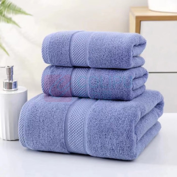汉司家纺 HANSI 毛巾+浴巾珊瑚绒套装 2条/套 (蓝色) (单位:套)