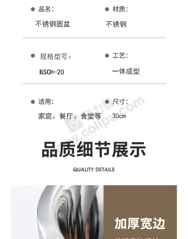 百晟长恒 BAISHENG CHANGHENG 不锈钢圆盆 BSCH-20 30cm (银色) (单位:个)