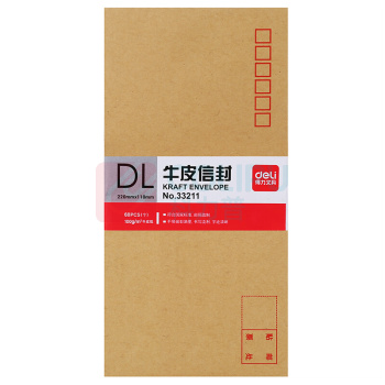 得力 deli 牛皮纸信封 33211 5号 220*110mm 60个包(60个/包起订) (单位:个)