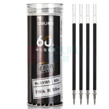 得力 deli 臻顺滑中性笔芯签字笔替芯 办公用品 子弹头 电商专供 33165 0.5mm 60支/桶 DC (单位:桶)