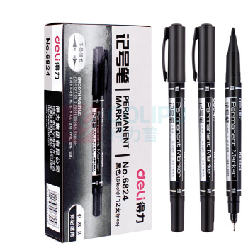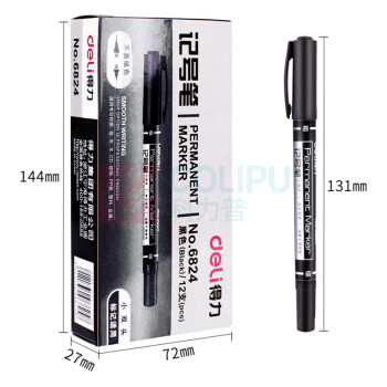 得力 deli 双头油性记号笔 6824 细头1.0-1.2mm,极细头0.5mm (黑色) 36支/组 (单位:组)
