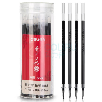 得力 deli 考试桶装中性笔替芯子弹头 S778 0.5mm (黑色) 60支/桶 (单位:筒)