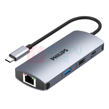 飞利浦 PHILIPS usb-c转hdmi网口拓展坞分线器 type-c 4K60Hz 适用华为苹果电脑转换器macbook网线转接头 (单位:个)