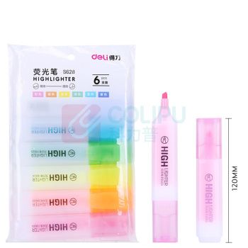得力 deli 荧光笔 斧头 细杆 S628 120mm 0.7MM (混色) 6支/袋 (单位:袋)