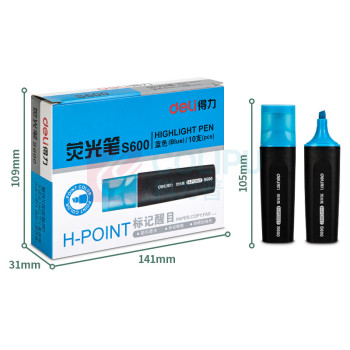 得力 deli 荧光笔 斧头 扁杆 S600 5.0mm 105mm (蓝色 天空蓝) 10支/盒 (单位:盒)