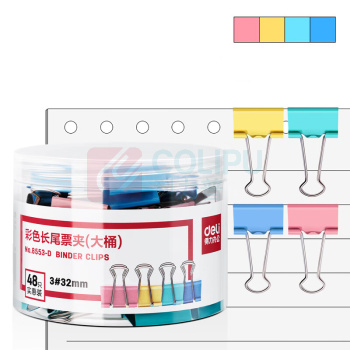 得力(deli) 长尾夹 8553-D 32mm 32mm 金属 彩色 48只/筒 筒 (单位:筒)