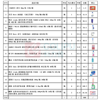 多芬 Dove 等品牌劳保套装(90g药皂1块+720g沐浴露1瓶+160g卫生卷纸4提+525ml洗手液2瓶+90*3块香皂1组+360g 沐浴露2瓶+3支装牙刷1组+750g去屑洗发露1瓶+750g清爽型洗发露1瓶+两支装牙刷2组+ 120抽抽纸4提+380g沐浴露1瓶+3.5kg洗衣液4瓶+206g*2块洗衣皂2组) (单位:套)