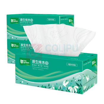雨森 原生纯木盒装面巾纸 四层 190*195mm 408张/盒 3盒/提 16提/箱 (单位:箱)