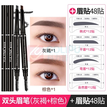 滴畅 眉笔女削笔拉线防水防汗自然持久不脱色初学者雾眉刷眉粉超细 1支深棕色+1支灰褐色+眉贴48片 1支深棕色+1支灰褐色+眉贴48片 (单位:个)