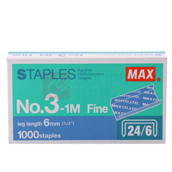 美克司 MAX 订书钉 No.3-1M MS90212 1000枚/盒 4盒/组 (单位:组)