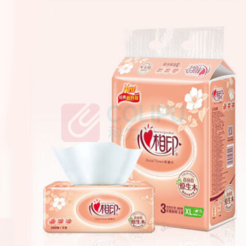 心相印 Mind Act Upon Mind 袋装面巾 DT200 双层 210mm*210mm 200抽/包 3包/提 4提/组 (单位:组)