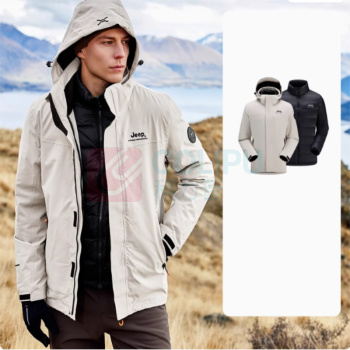 Jeep 冲锋衣羽绒两件套 J442074001 XS/S/M/L/XL/2XL/3XL/4XL (品牌黑/中国红/深军绿/浅咖色/云褐色/浩渺灰) 颜色/尺码请备注订单上 (单位:件)
