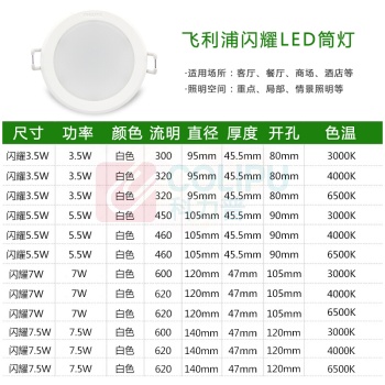 飞利浦 PHILIPS LED筒灯 3.5寸/闪耀/6500K/105MM/7W (白色) (单位:个)