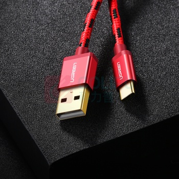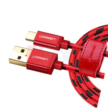 绿联 UGREEN Type-C数据线 快充充电线 安卓USB-C转接头充电器电源线 通用华为P20/Mate20小米8手机 0.5米 40483 (红) (单位:根)