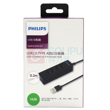 飞利浦 PHILIPS USB分线器2.0 SWR1526W/93 高速一拖四多接口 笔记本台式电脑4口集线器HUB扩展鼠标键盘U盘 (单位:个)