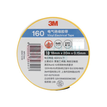 3M PVC电气绝缘胶布 160# 18mm*20m (黄色) 10卷/包 (10卷起订) (单位:卷)
