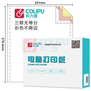 科力普 COLIPU 电脑打印纸 241-3 80列 无等分 3联 无压线 (彩色) 1000页/箱 (单位:箱)