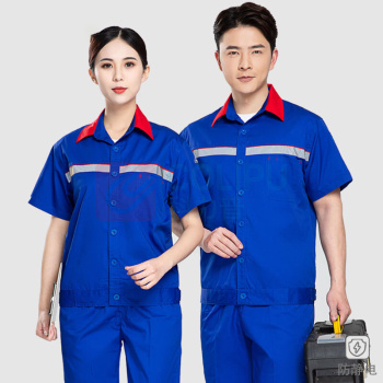 保罗岚芝 防静电工作服套装男夏季薄款舒适透气耐磨加油站电工电焊劳保服可定制logo LW6036 180 (宝蓝) (单位:套)