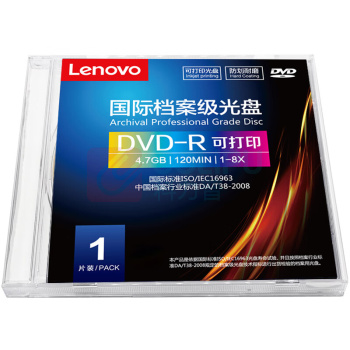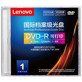 联想 LENOVO DVD-R 档案级光盘 1-8速 4.7GB可打印 盒装 符合16963标准 DA/T38-2008 (单位:片)