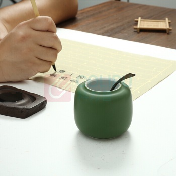 弘梅 弘梅陶瓷水盂笔洗 仿古小号绿色水盂 文房四宝砚台研磨用小水丞 (单位:个)