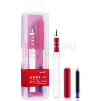 得力 deli 得力(deli)EF明尖优尚系列矫姿钢笔签字笔 办公书写学生练字随行套装 软胶握手赠墨囊 红 (单位:个)