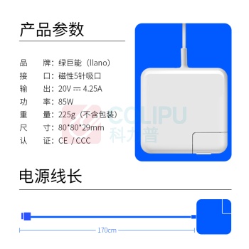绿巨能 绿巨能(llano)适用苹果电脑充电器85W MacBook Pro A1398 A1424 MC975笔记本电源适配器线20V 4.25A 85W 20V4.25A【2.0T头】 (单位:个)