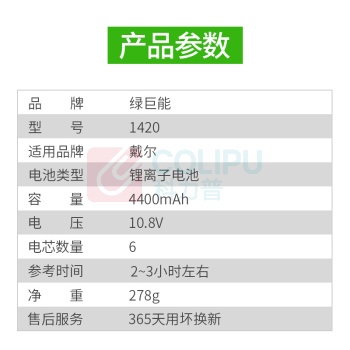 绿巨能 绿巨能(llano)戴尔笔记本电池WW116 兼容Inspiron 1420 Vostro 1400 V1400 MN151 PP26L dell电脑电池6芯 1420 6芯 电池 (单位:个)
