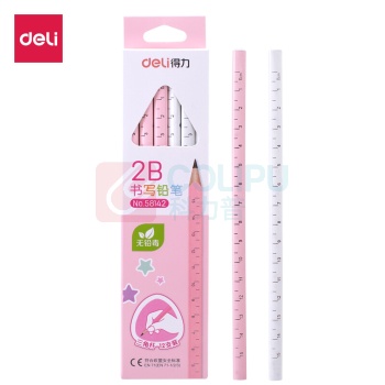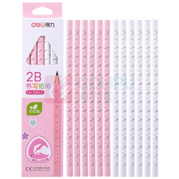 得力 deli 得力(deli)小学生2B直尺书写铅笔 三角杆带刻度 公主粉12支/盒58142 12支2B原木三角杆 粉色 (单位:个)