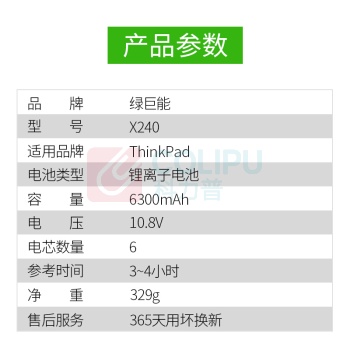 绿巨能 绿巨能(llano)联想笔记本电池 X240 X250 X260 T440 T450 T450S K2450 T460P Thinkpad电脑电池 X240 X250 X260 6芯电池高容量 (单位:个)