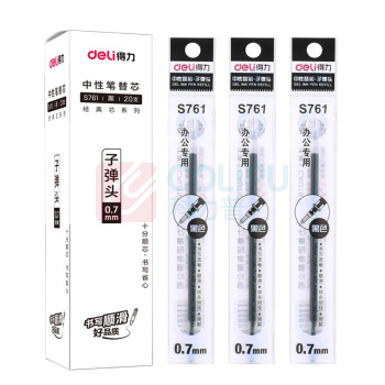 得力 子弹头中性笔芯 S761 0.7mm (黑色) 20支/盒 (单位:支)